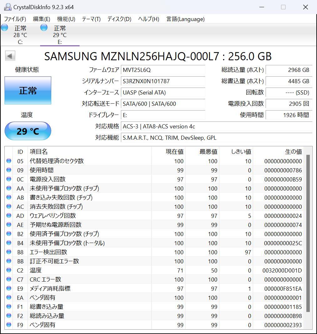 | ★☆1円 ~スタート☆Samsung SSD PM871b M.2 2280 MZ-NLN256C 256GB 使用時間:1926H☆★ | |