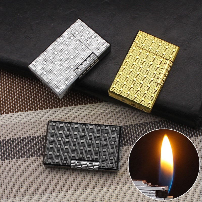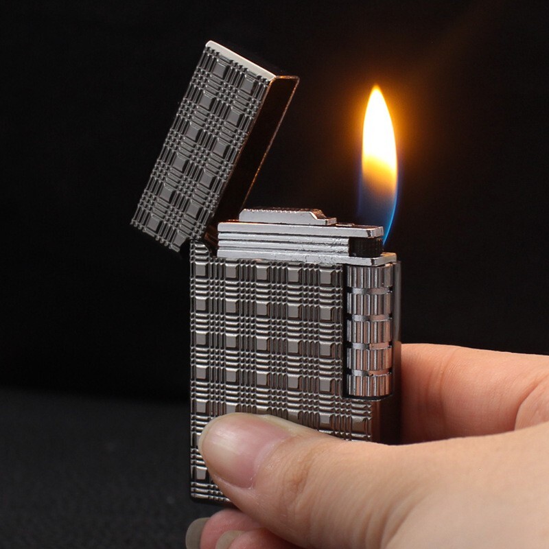 両面 クリング ファイルパターン チェックパターン 格子柄 ガスライター 快音 が迫力満点なデザインのフリントサイドローラー式ガスライターです。