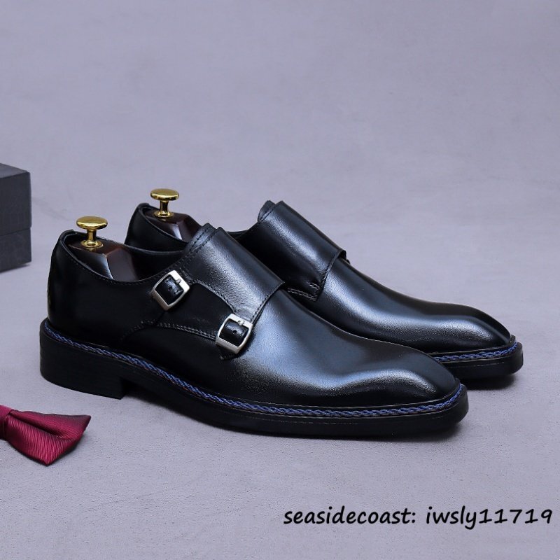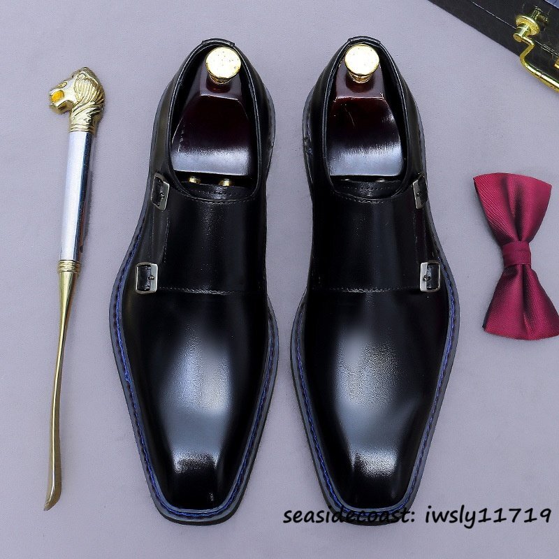 定価10万◆最高級 ダブルモンクストラップ 本革 レザーシューズ ビジネスシューズ 職人手作り 紳士靴 革靴 冠婚葬祭 新品 ブラック 26.5cm