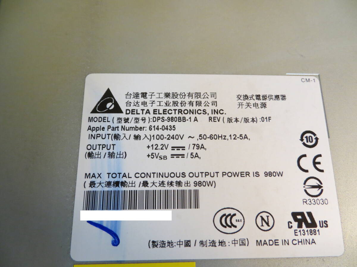 Apple純正の電源ユニット「DPS-980BB-1A」(980W)です。