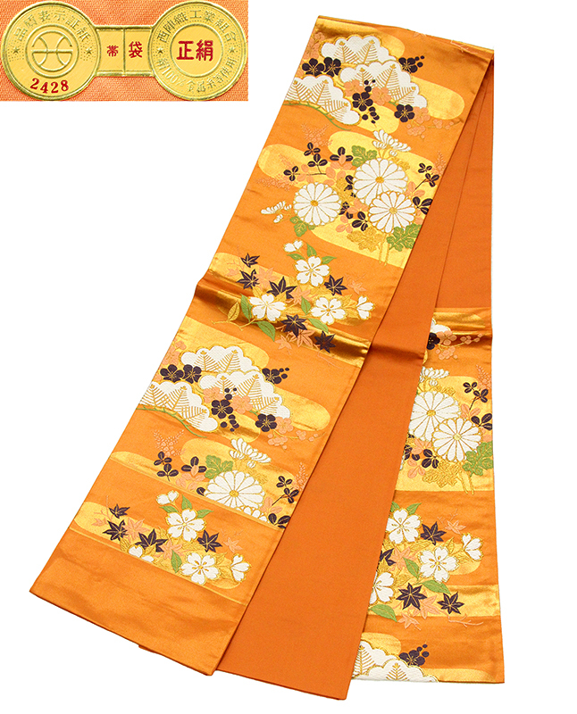 | ★品質・詳細 | ○地色 【こちらの地色は落ち着いた茜(あかね)で染められた黄赤地系です。】 ○絹織物 ○新品・未仕立の特撰袋帯です。 ○西陣名門河合物謹製 【西陣証紙番号 2428】 ○長さ 約4.4m ○参考上代 280,000円 |