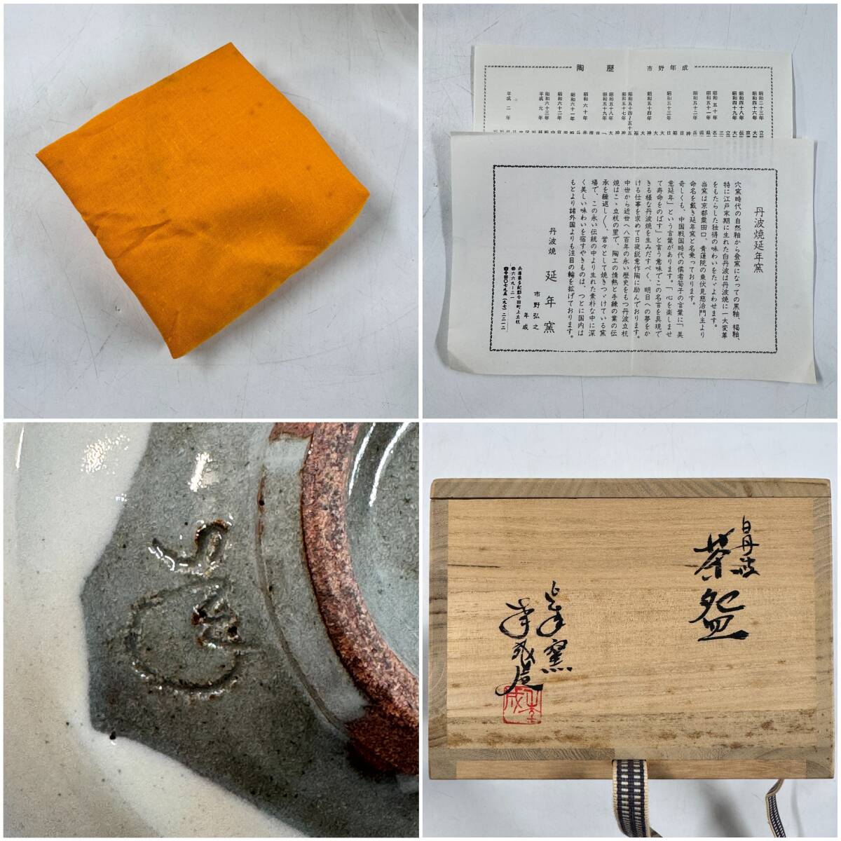 未使用 丹波焼 延年窯 市野年成造 抹茶碗 直径13.2㎝×高さ7.7㎝ 茶道具 茶器 共箱 共布 栞 経年保管品 現状品の出品です。