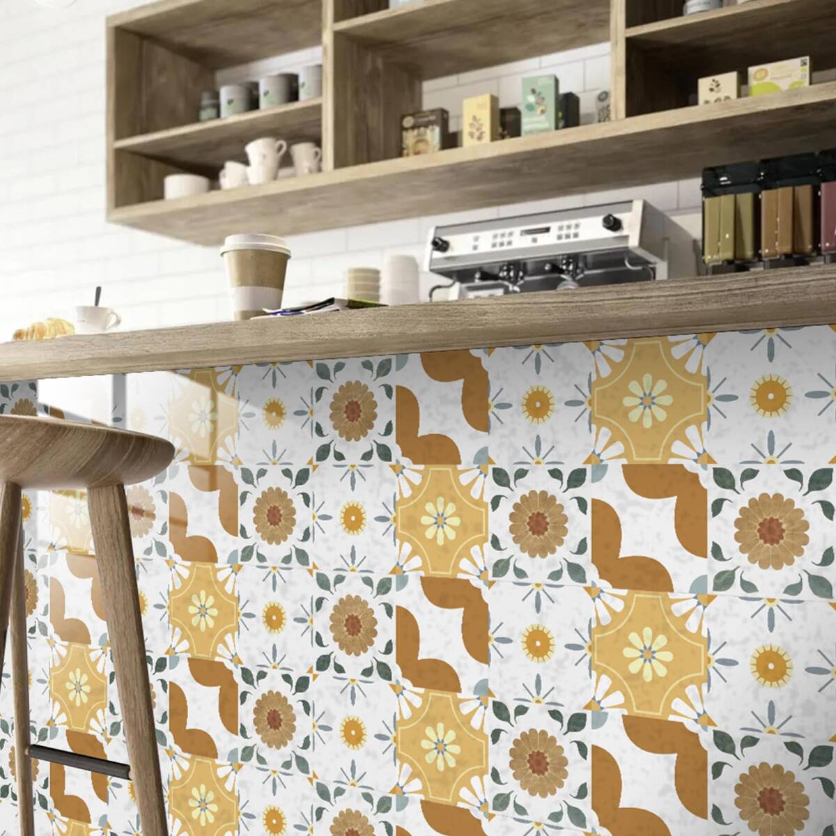 HARUMAKI タイルシール 壁紙シール タイルステッカー 20枚セット PVC素材 自粘設計で簡単に取り付け可能 防水防潮 耐久性が高く お手入れも簡単 取り外し可能 キッチン、バスルーム、リビングルーム、寝室の壁や床に適しています (デザインH, 10cm×10cm)
