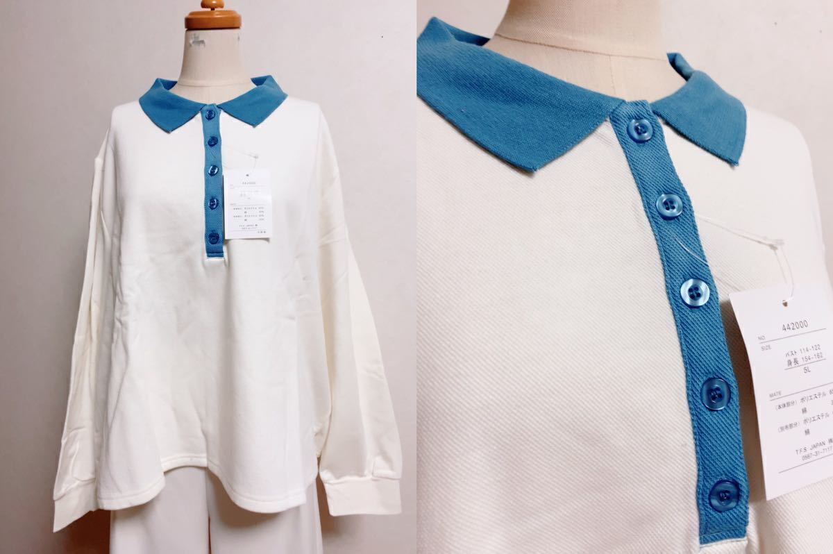 KN251*5L大きいサイズ テレサ(配色切替ポロシャツ)シロ