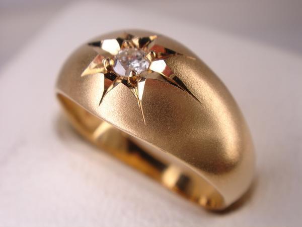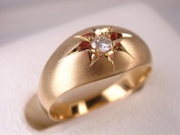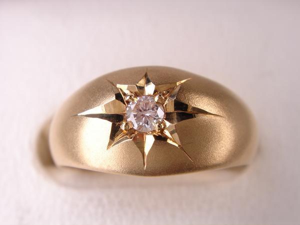 【コメント】 定番の18金ダイヤ月形甲丸リングでございます