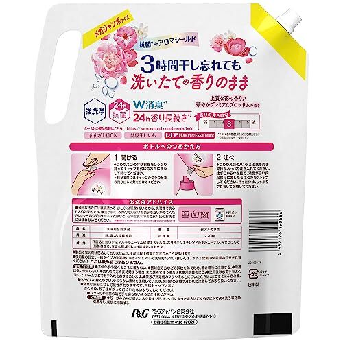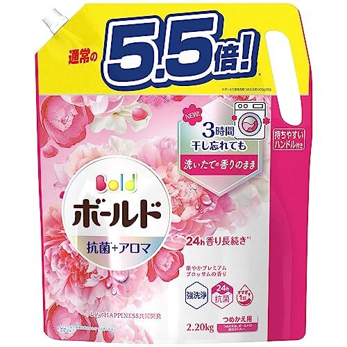 「ボールド 洗濯洗剤 液体 プレミアムブロッサム 詰め替え 2200g[大容量]」▼4987176190666▼(商品説明)・ 詰め替え 2200g ・・PatternName:プレミアムブロッサム 詰め替え 2200g・柔軟剤入り洗濯洗剤 ボールドジェル 華やかプレミアムブロッサムの香り・3時間干し忘れても!洗い立ての香りのまま・24時間香り長続き・強洗浄力だから洗濯水に溶け出した汚れもニオイのもとも、きれいに!・すすぎ1回でOK説明 商品紹介 ボールド 洗濯洗剤 液体 プレミアムブロッサムの香り 詰め替え 2 200g NEW! 3時間干し忘れても洗いたての香りのまま レノア HAPPINESS 共同開発 上質な花の香り♪華やかプレミアムブロッサムの香り W消臭 * 24h香り長続き *1 抗菌*2 + アロマシールド 強洗浄 すすぎ1回OK * 2種類の消臭成分 *1 保管状態で *2 すべての菌の増殖を抑えるわけではありません 原材料・成分 界面活性剤(19%:アルキルエーテル硫酸エステル塩、ポリオキシエチレンアルキルエーテル、純せっけん分(脂肪酸塩))、安定化剤、香料、pH調整剤、水軟化剤