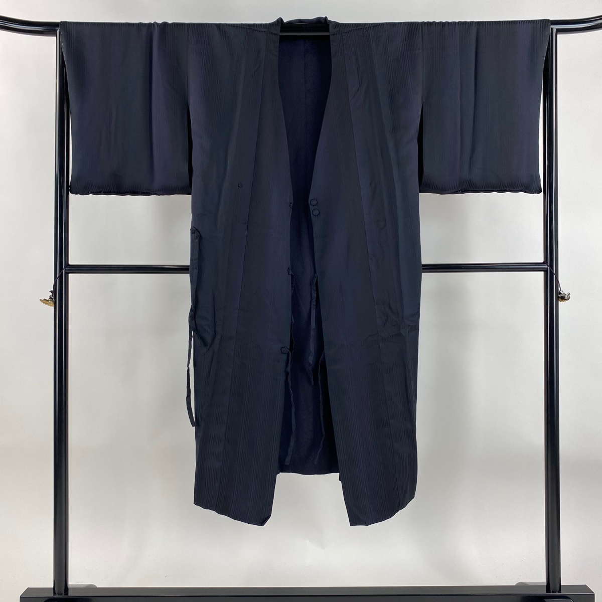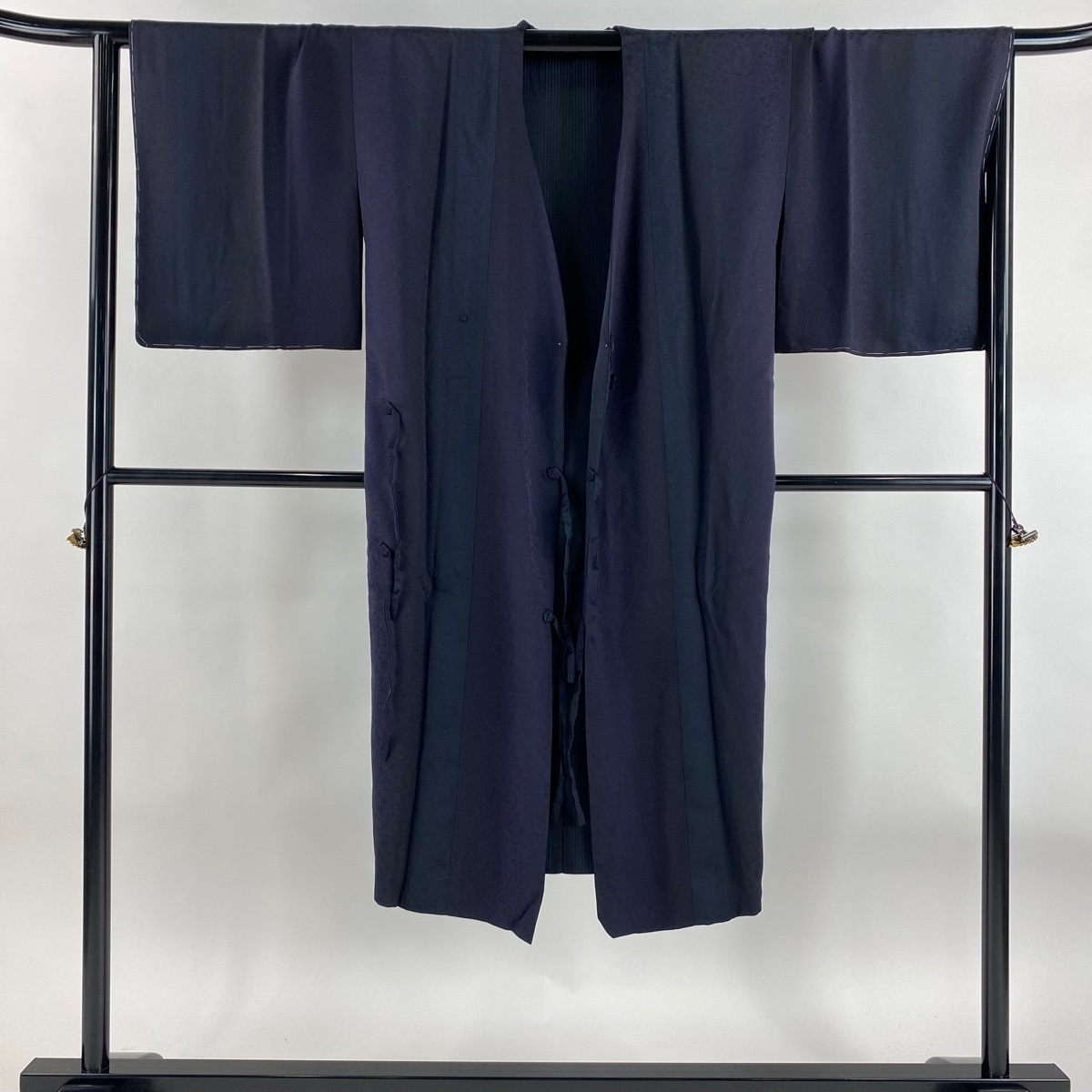 | 道中着 美品 名品 和装コート 地紋 ぼかし 黒 身丈125.5 裄丈66 M 正絹 【中古】 |