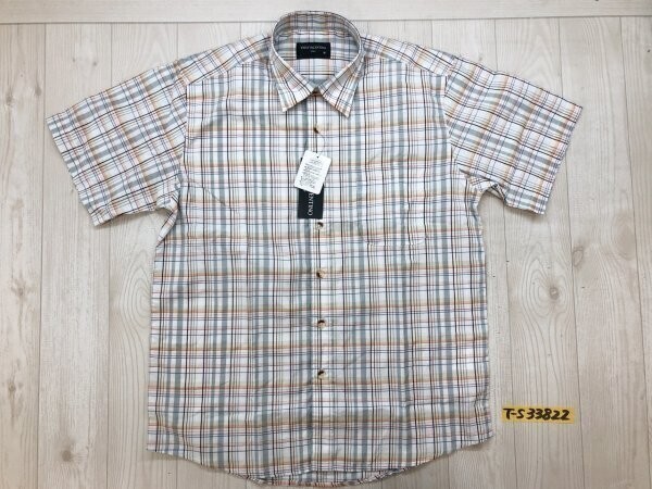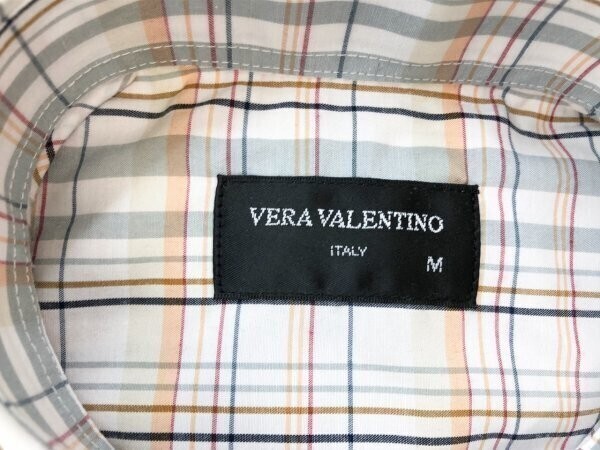 VERA VALENTINO メンズ 胸ポケット チェック 半袖シャツ M 紺オレンジ赤 です。