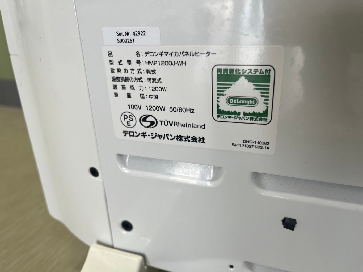 デロンギ・マイカパネルヒーター・HMP1200J-WH・ストーブ・暖房・中古・北海道より発送