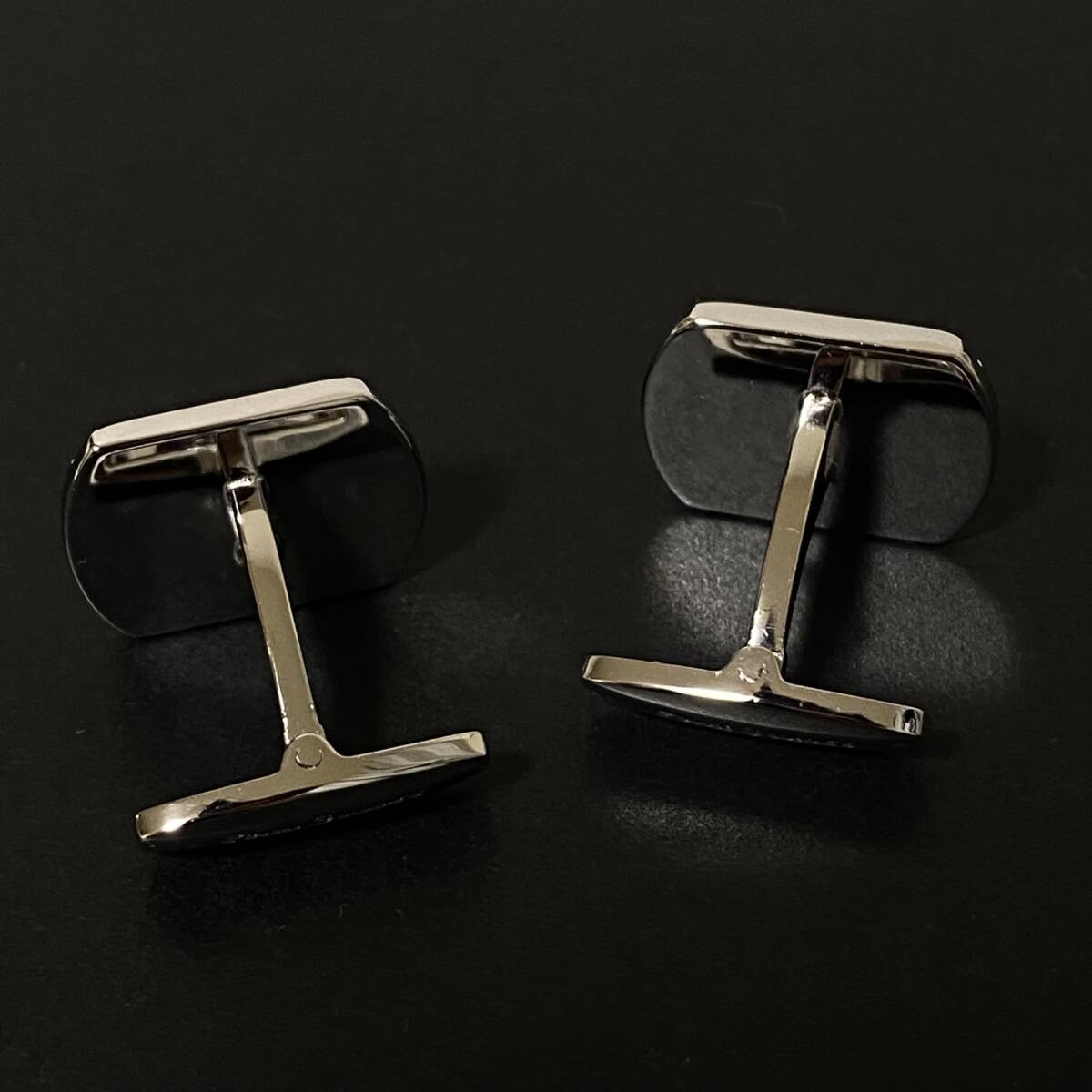 ◆ このカフリンクスは、シルバーの輝きとクリアストーンの凜とした光が融合したデザイン。