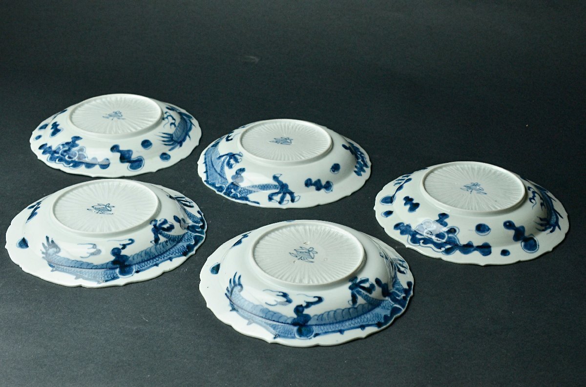 【YB】江戸時代 古伊万里龍紋皿5客 ★日本古玩骨董25Y1002