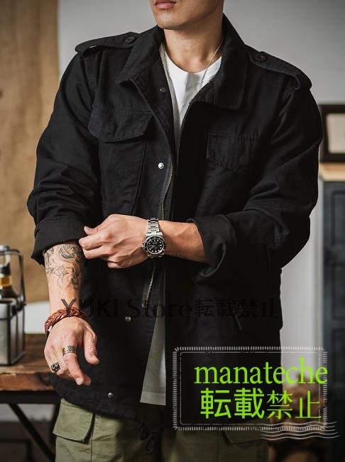 人気★ヴィンテージ復刻U.S. ARMY M-65 フィールドジャケット メンズ コットン ミリタリーシャツ 長袖 レプリカ L 黒