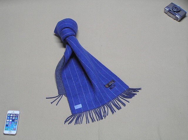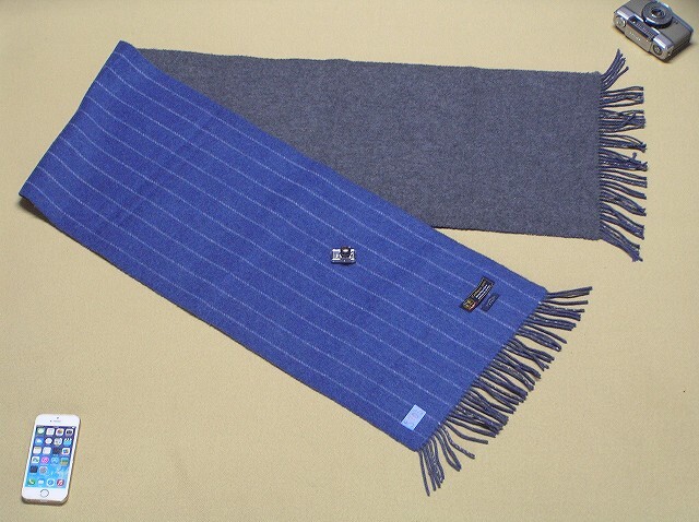 | 使用1回 極上カシミヤ100% リバーシブル仕様マフラー ストール 定番の紺ネイビー系 上質な柔らかさ 美品 長さ150㎝×幅31㎝ ■5905 | |