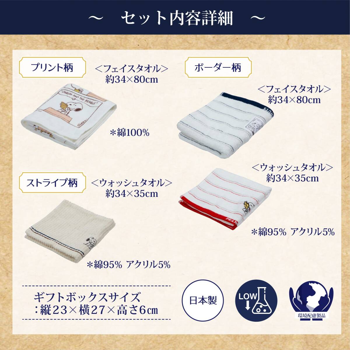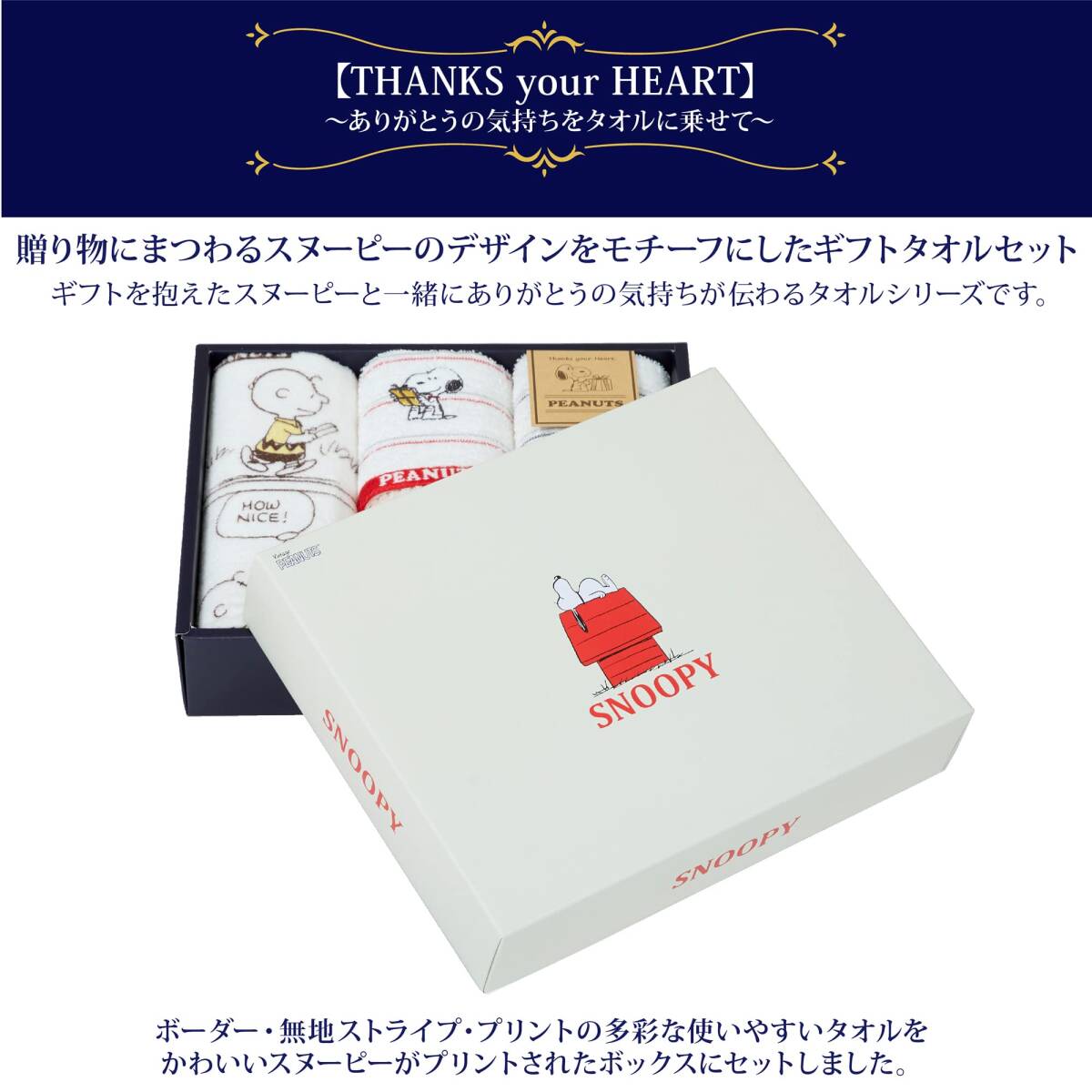 nishikawa 【 西川 】スヌーピー タオル ギフトセット 23X27X6cm 洗える Thanks your Hearts 日本製 TT