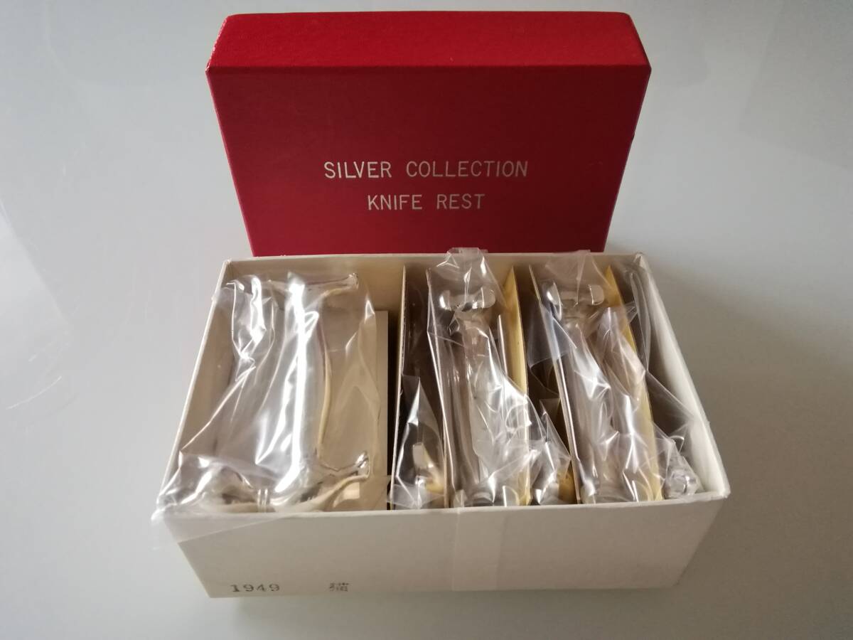 未使用 SILVER COLLECTION KNIFE REST シルバーコレクション ナイフ レスト 猫 キャット 6客 元箱 1949年 ビンテージ