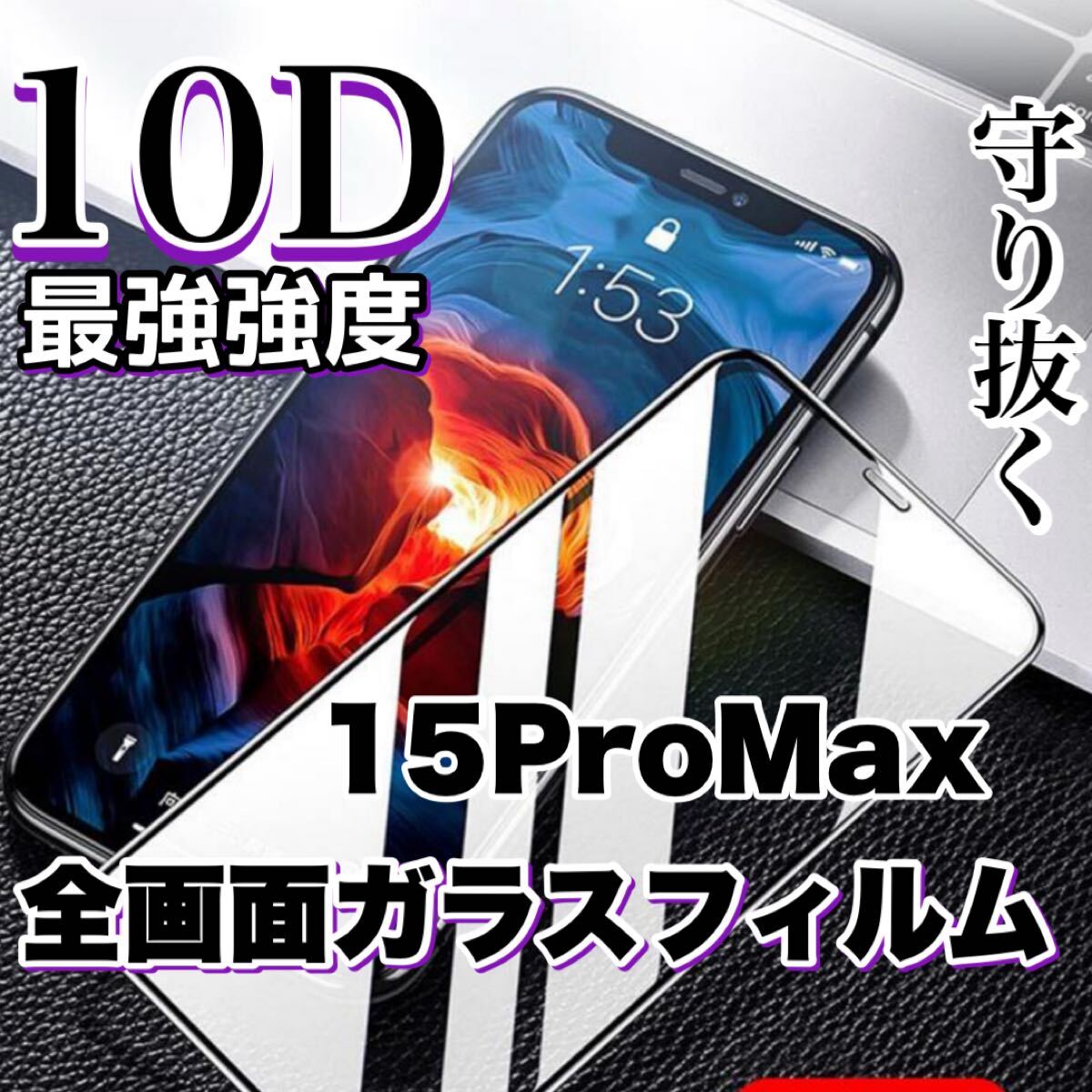 自分愛用!最強強度!99%超透過フィルム!【iPhone15Pro Max】最強強度10D全画面保護フィルム