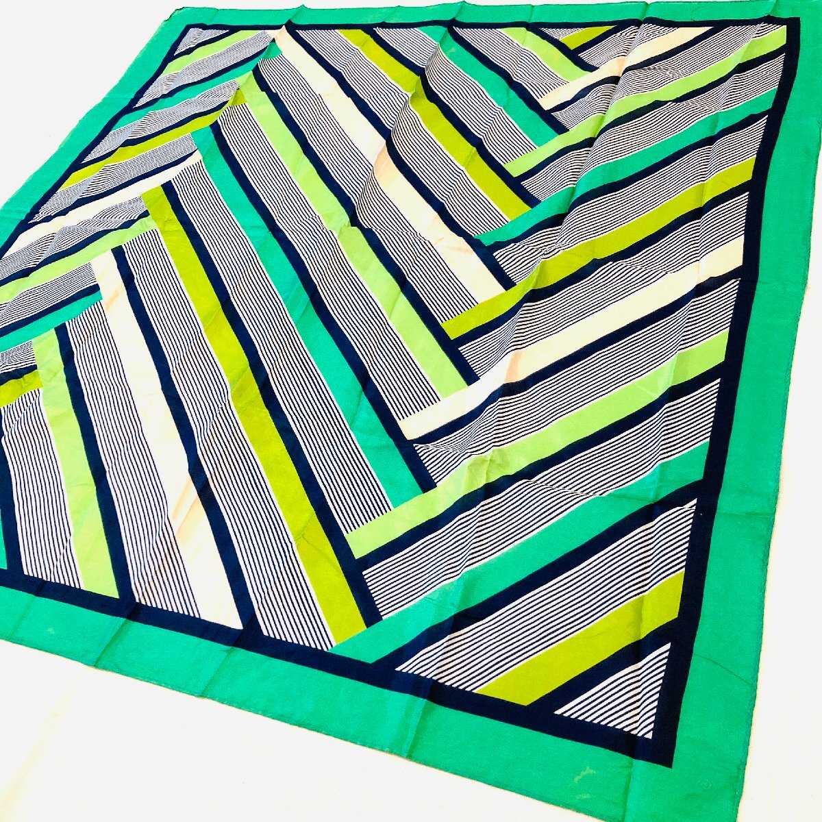 アート デザイン 大判 スカーフ グリーン/緑系 76 × 78cm