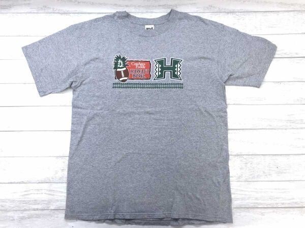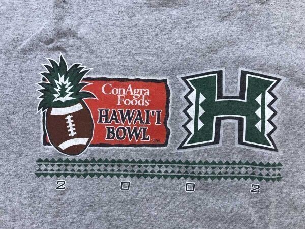 anvil USA製 ハワイ大学 Hawaii ハワイボウル カレッジ フットボール 2002 Conagra Foods アメフト 半袖Tシャツ メンズ L 杢グレー です。