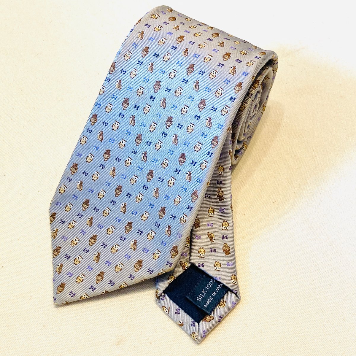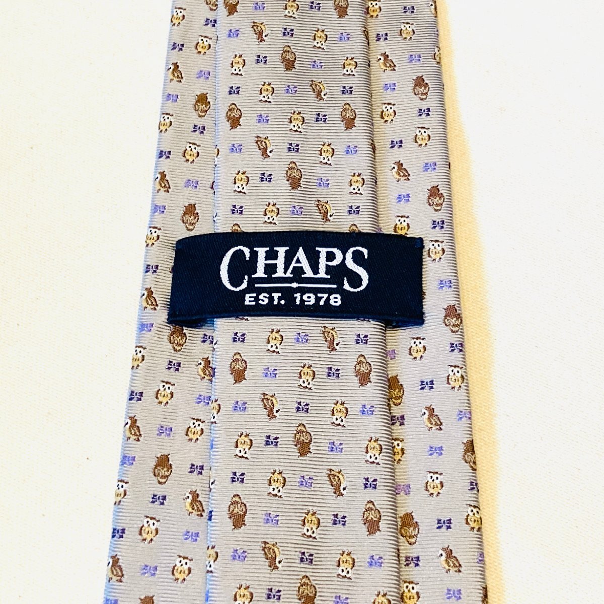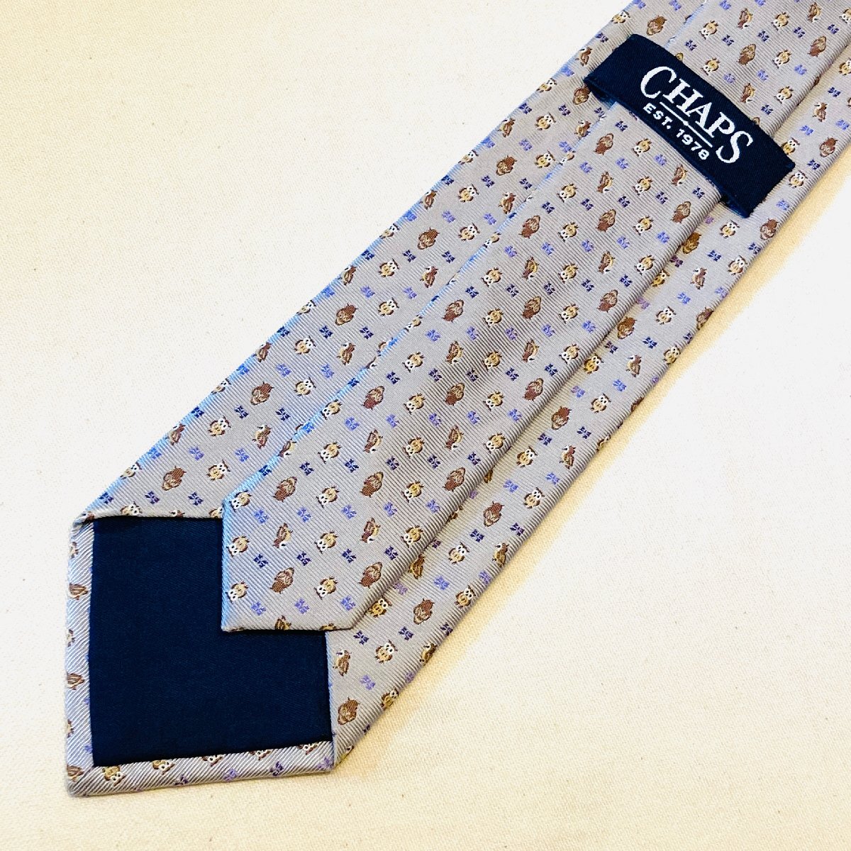 CHAPS チャップス 日本製 絹 シルク SILK 100% 高級 ネクタイ ライトパープル系 フクロウ モチーフ
