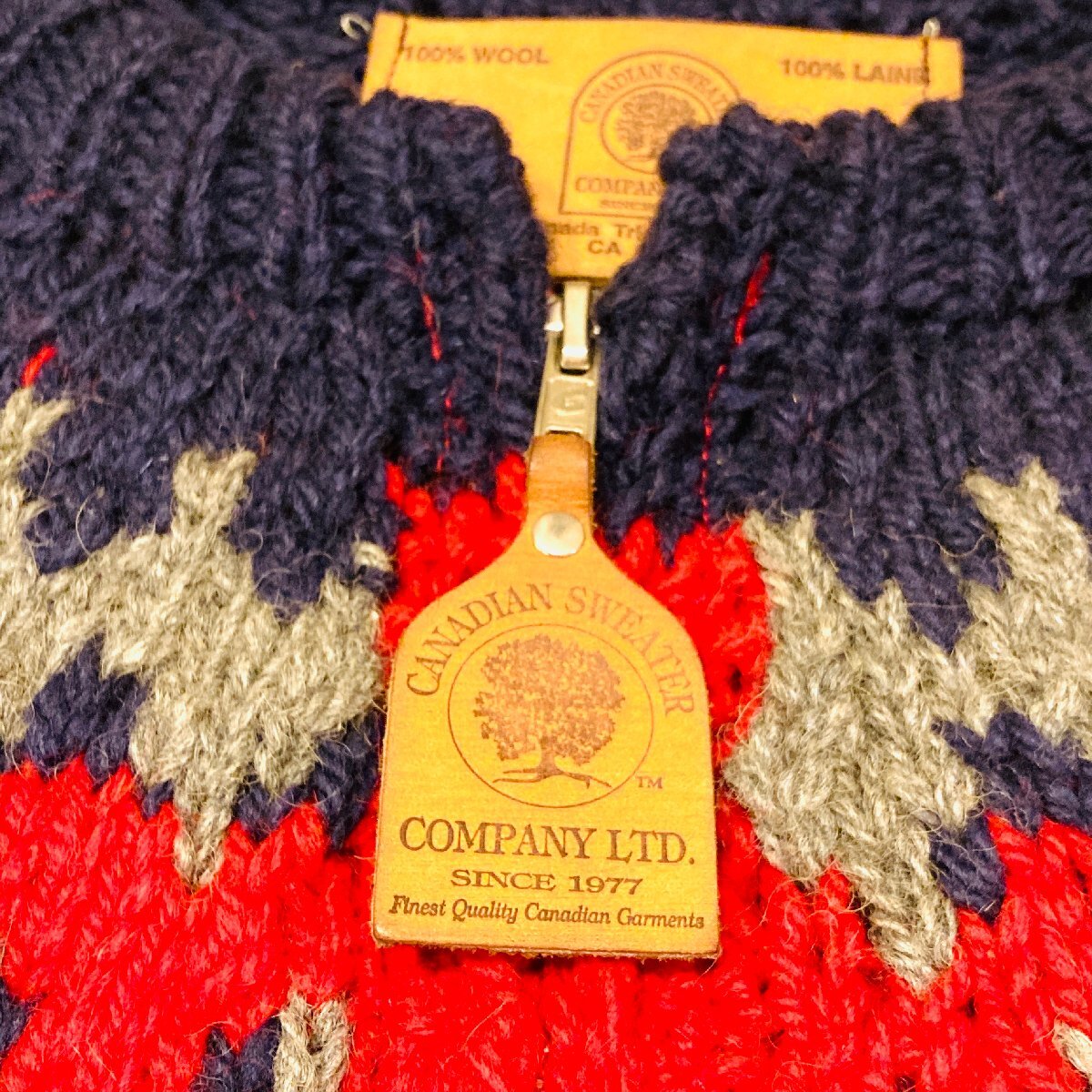 美品 CANADIAN SWEATER Company Ltd. カナディアンセーター カナダ製 100% WOOL ウール ニット セーター ジップアップ レッド系