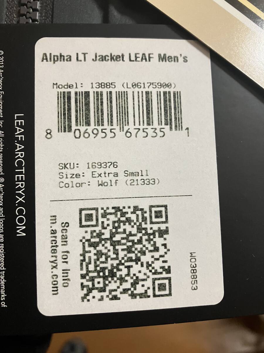 新品 ARC' TERYX Leaf Alpha LT Jacket アークテリクス リーフ アルファ LT ジャケット ウルフ XS [GEN2 廃盤]です。