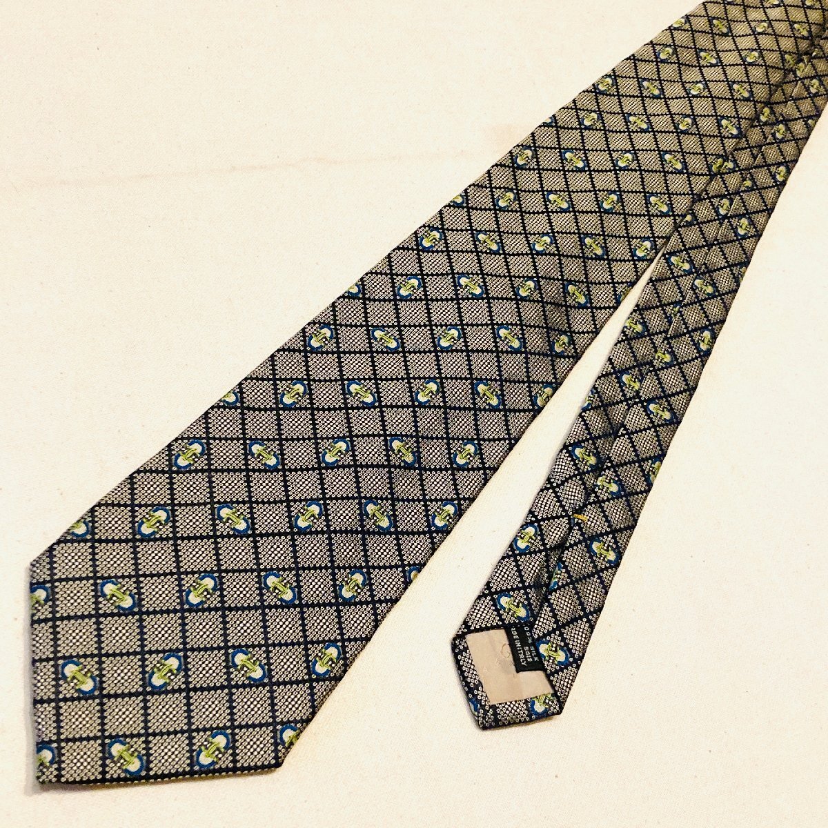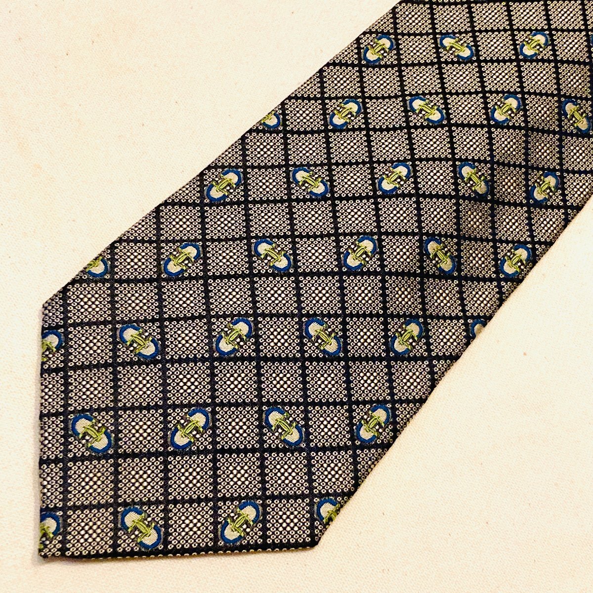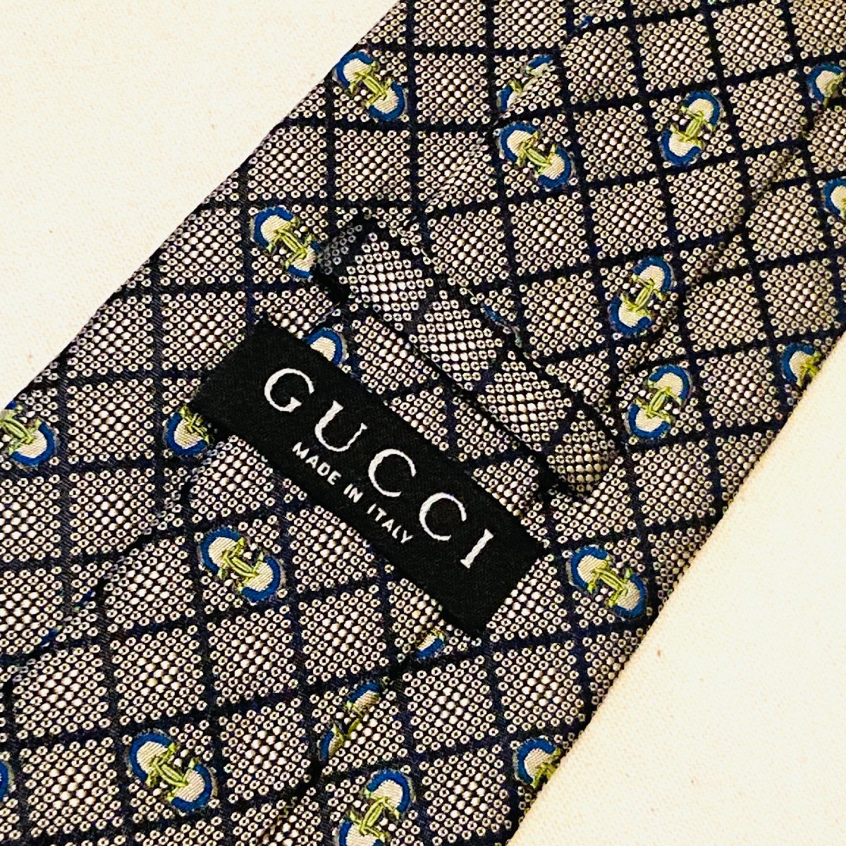 GUCCI グッチ イタリア製 絹 シルク SILK 100% 高級 ネクタイ グレー/ネイビー系 総柄