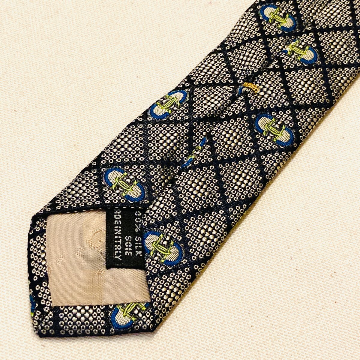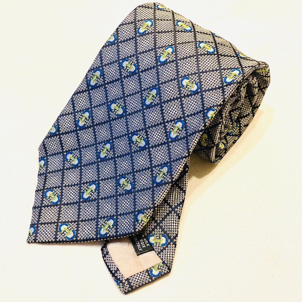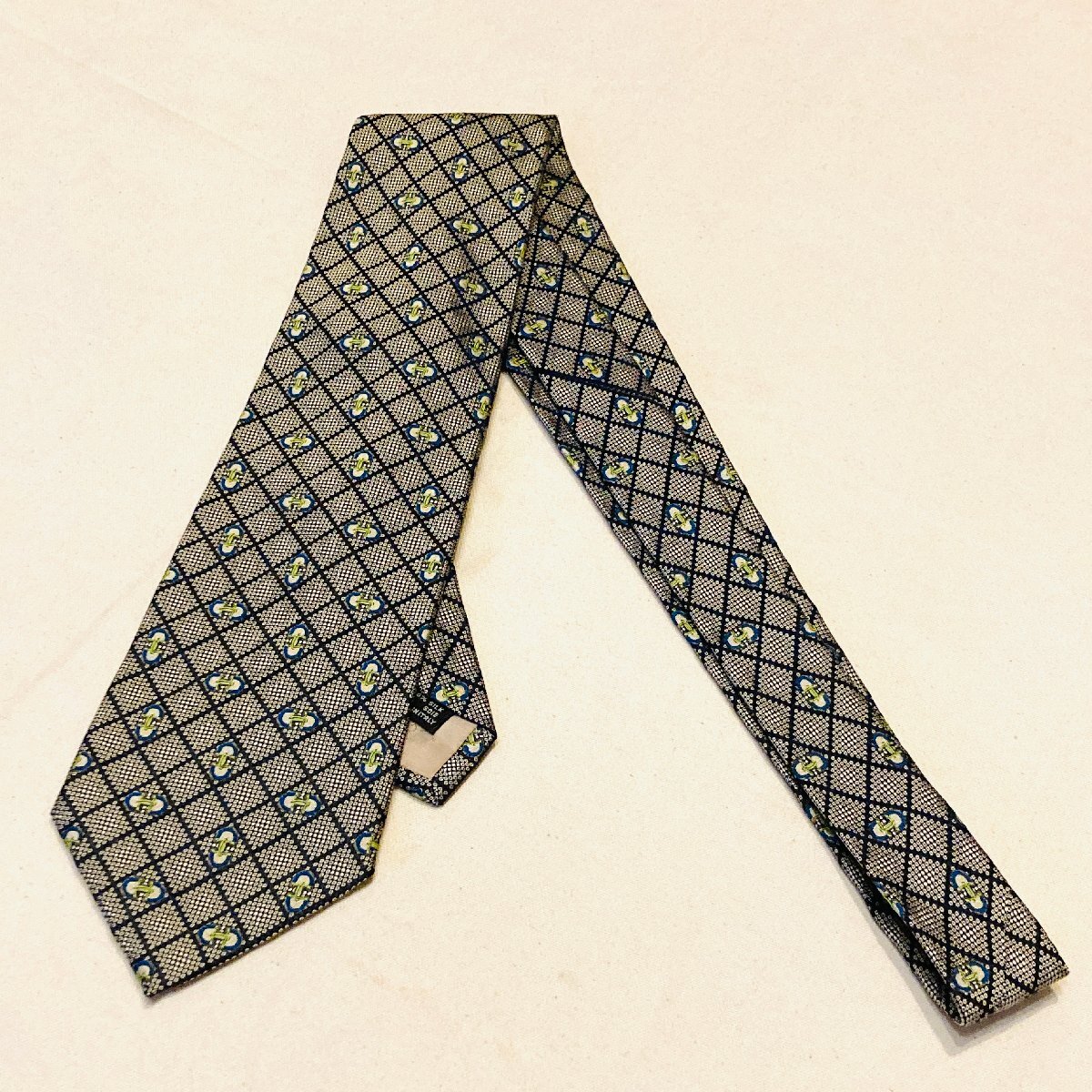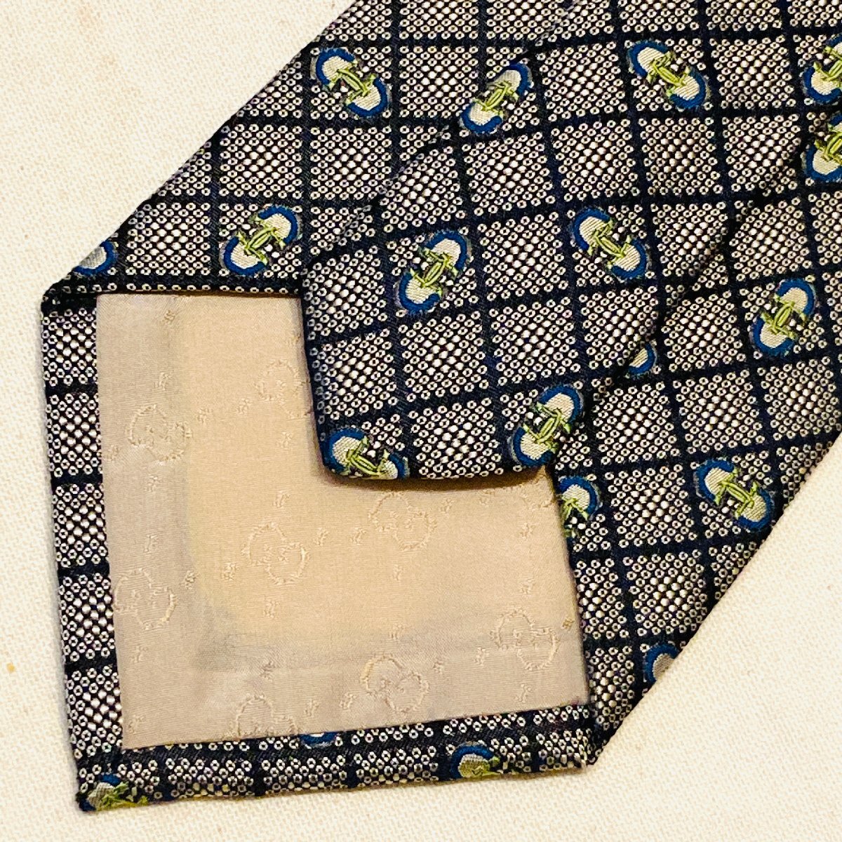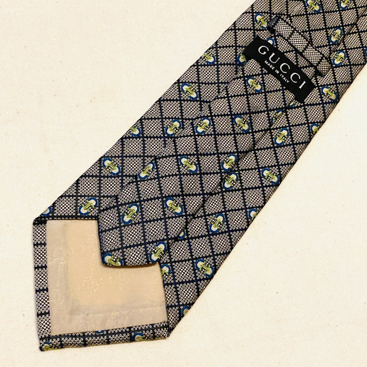 GUCCI グッチ イタリア製 絹 シルク SILK 100% 高級 ネクタイ グレー/ネイビー系 総柄