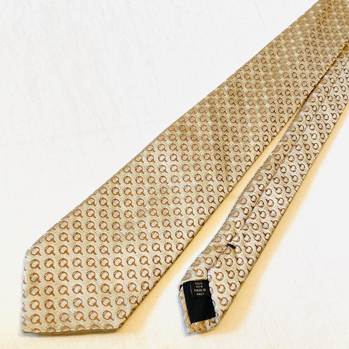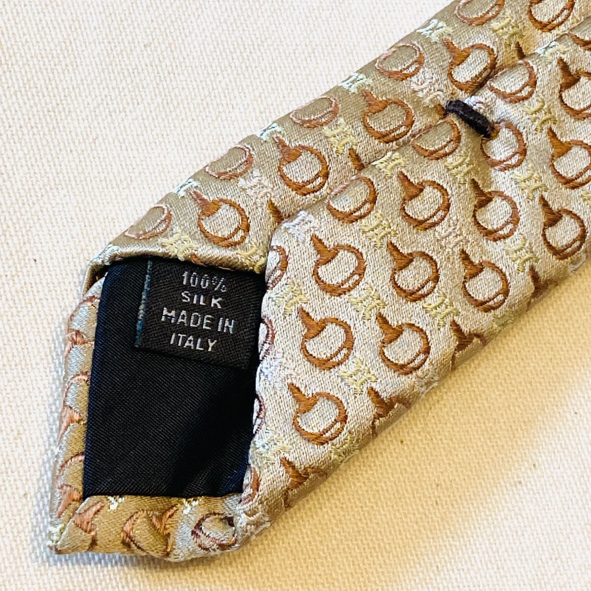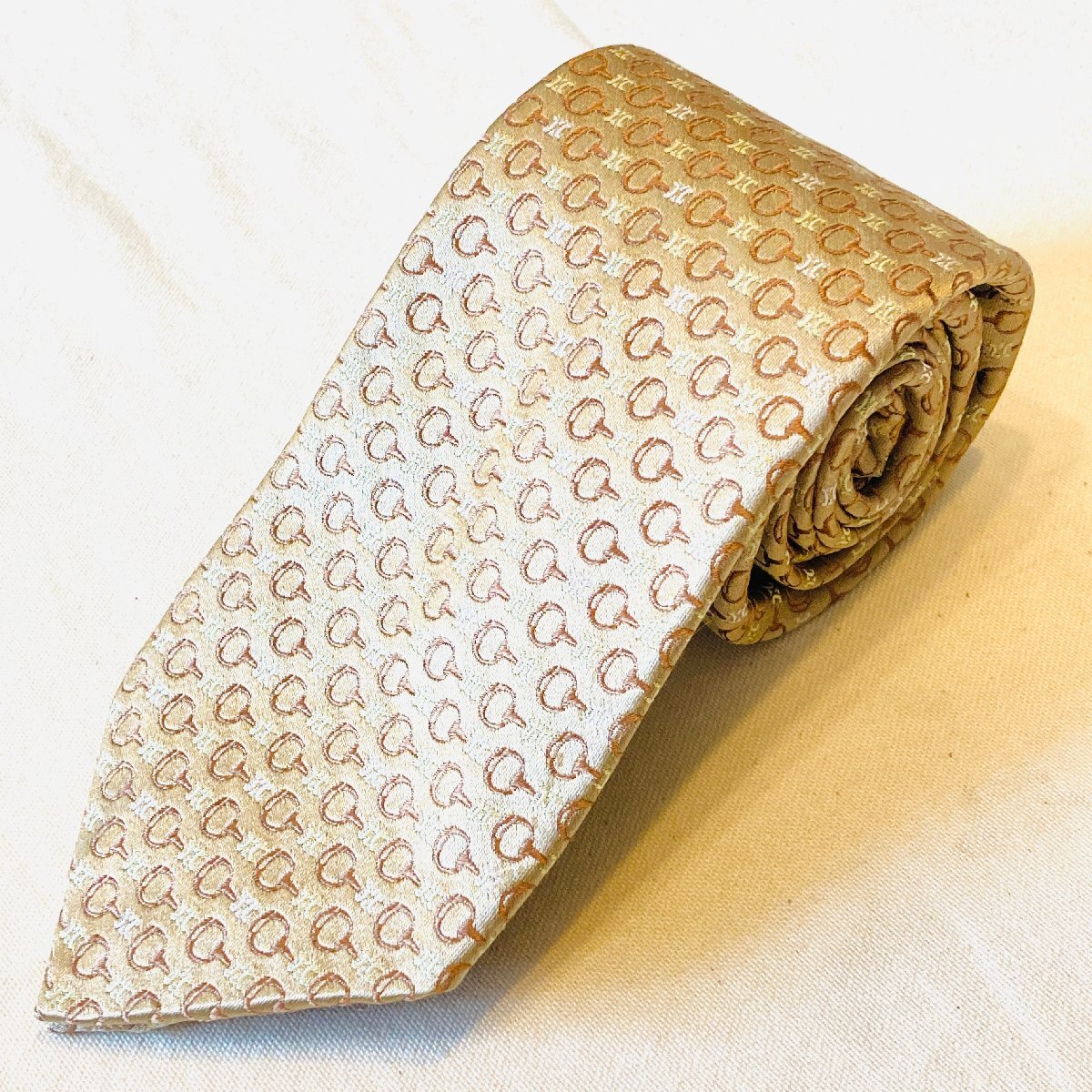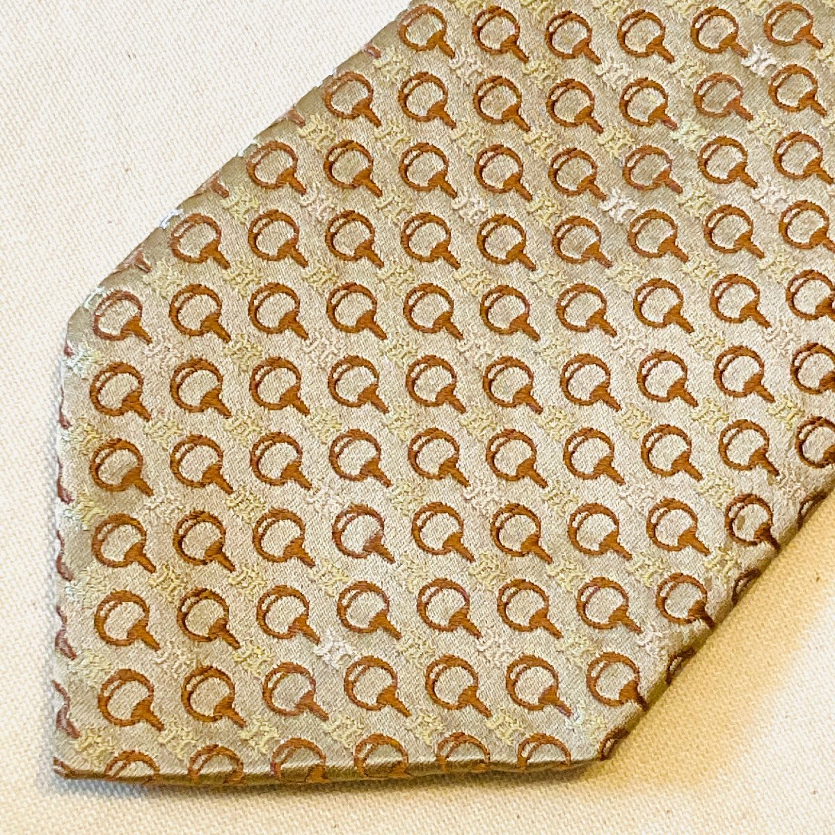 CELINE PARIS セリーヌ イタリア製 絹 シルク SILK 100% 高級 ネクタイ ゴールド/ベージュ系 総柄