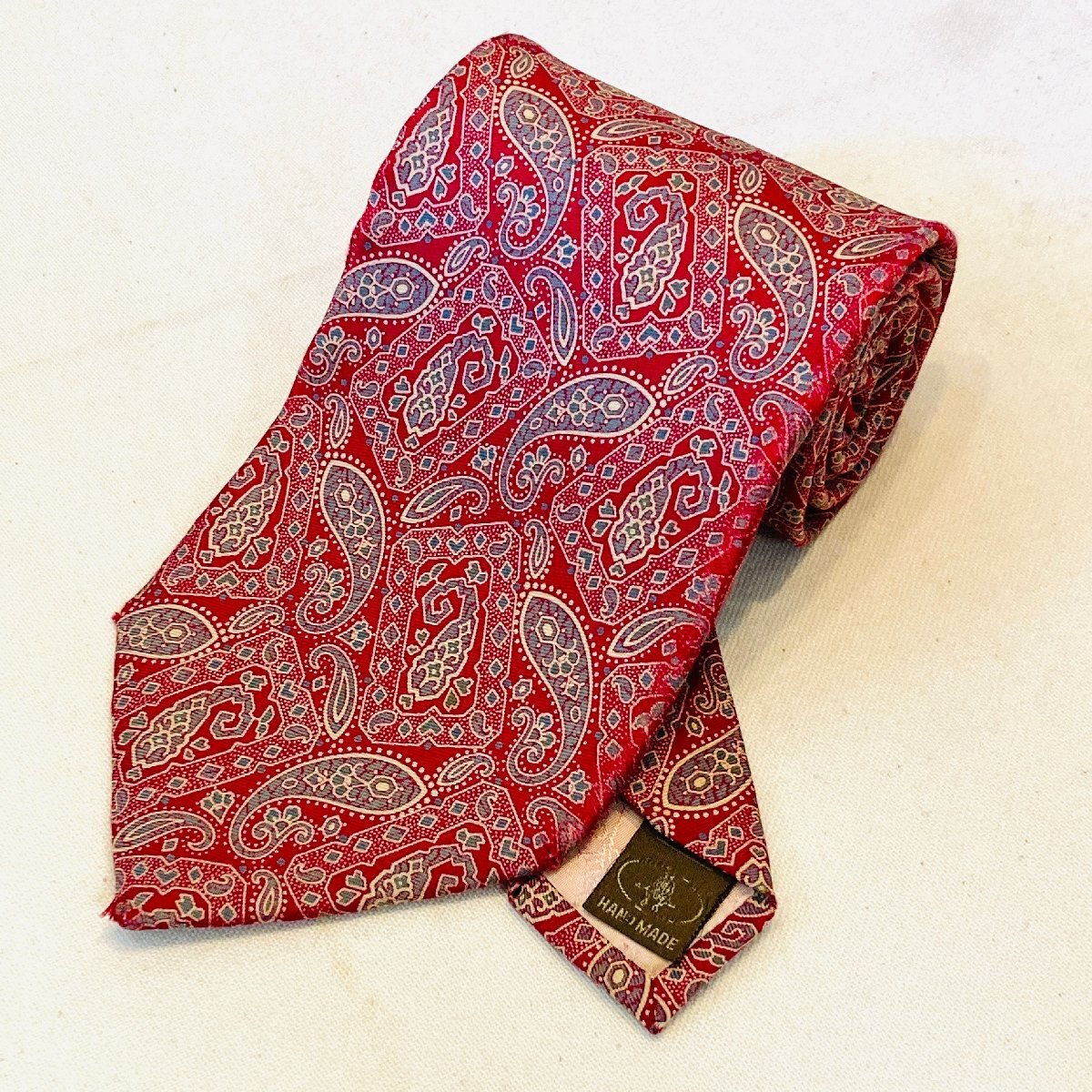 Paul Stuart ポールスチュアート 絹 シルク SILK 100% 高級 ネクタイ レッド系 ペイズリー柄