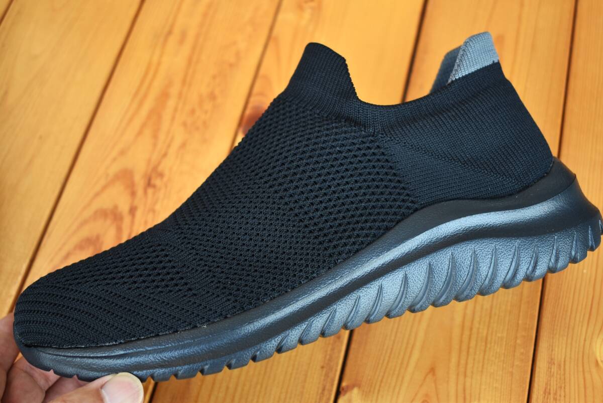 [値下げ] 24,5 黒 メンズ メッシュスリッポンシューズ 軽量ランニングシューズ