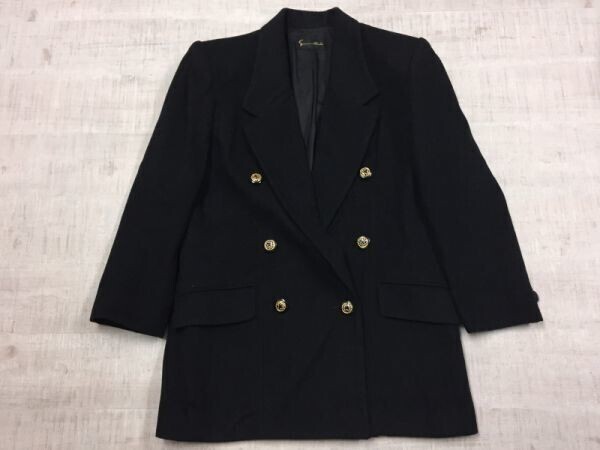 SUMMILLET レトロ オールド モード 古着 ダブル 金ボタン ブレザー テーラードジャケット レディース カシミヤ95% ナイロン5% 黒