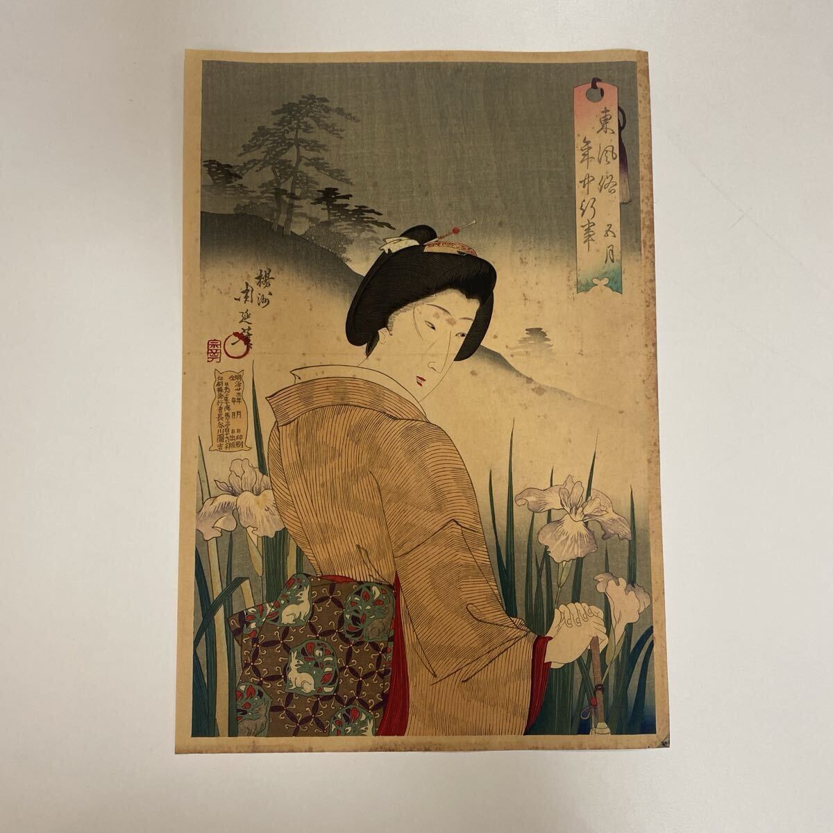 | 【真作】楊洲周延「東風俗年中行事 五月」浮世絵 錦絵 木版画 摺物(22072) | ||