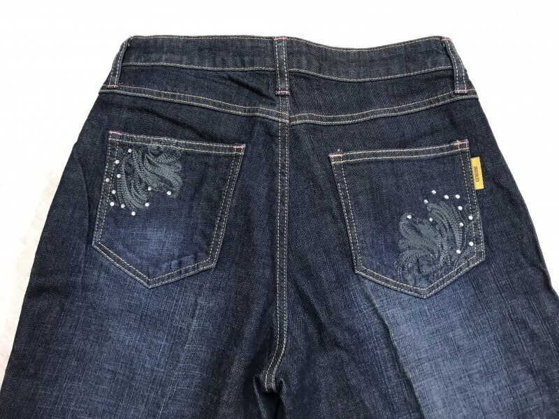 GENUINE QUALITY JEANS 平成ギャル Y2K 00s ラインストーン刺繍 デニムパンツ ジーンズ レディース ジップフライ 67 濃紺ワンウォッシュ です。