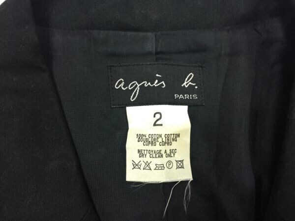 アニエスベー agnes b. レトロ モード 古着 日本製 クロップド テーラードジャケット レディース コットン100% 3つボタン 2 黒