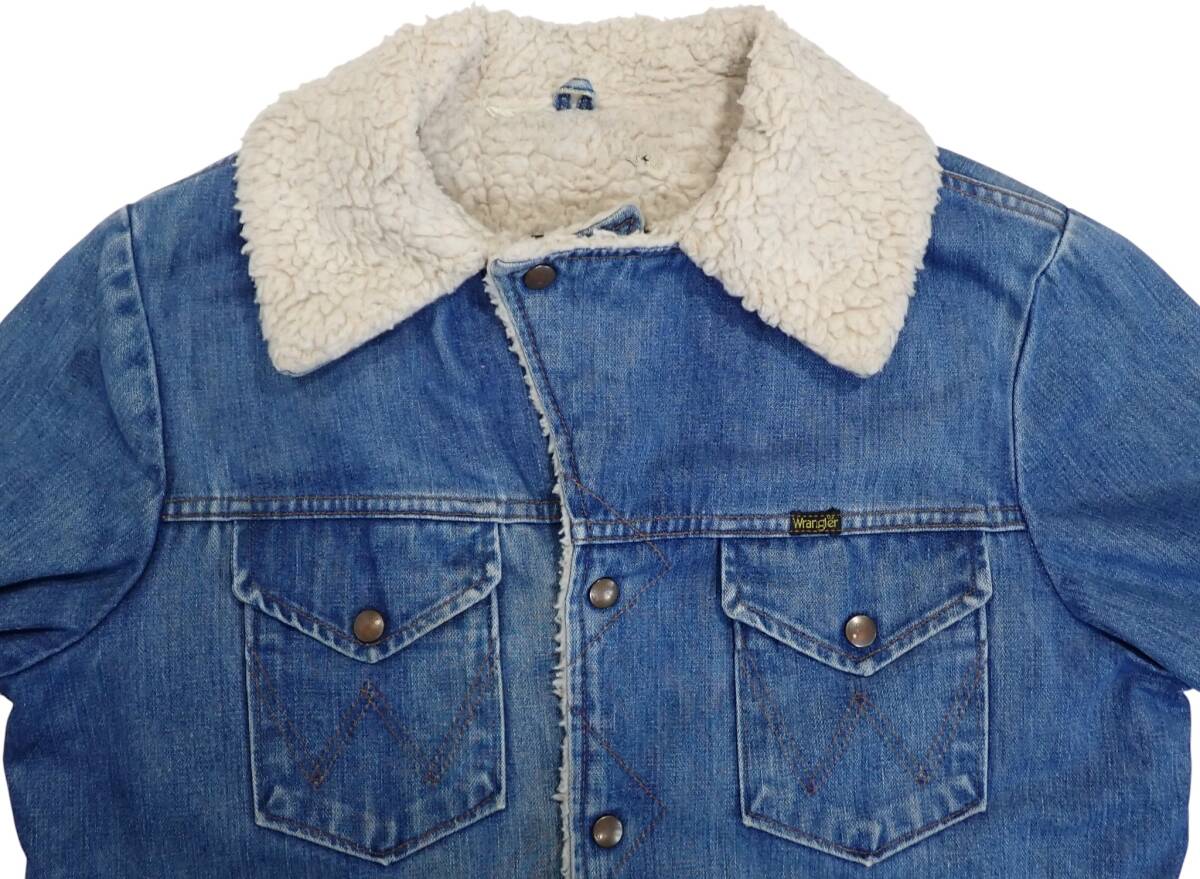 備考 WranglerのUSA製ビンテージ、デニム素材、裏ボア、スナップボタンのランチコートジャケットです。クリーニング、プレス済。