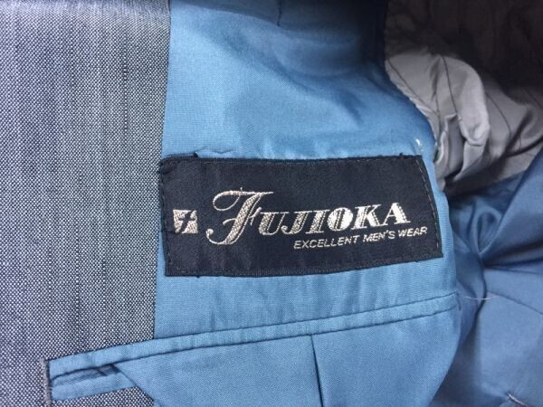 FUJIOKA 国産レトロ オールド 古着 光沢生地 シングル スーツ 上下セットアップ メンズ 2つボタン 青 です。