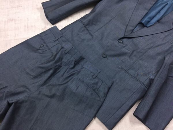 FUJIOKA 国産レトロ オールド 古着 光沢生地 シングル スーツ 上下セットアップ メンズ 2つボタン 青