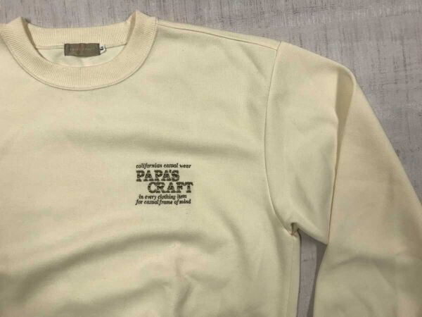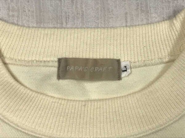 パパス クラフト PAPA’S CRAFT レトロ アメカジ トラッド 英字 ロゴ 刺繍 長袖 スウェット トレーナー メンズ 日本製 L 生成り です。
