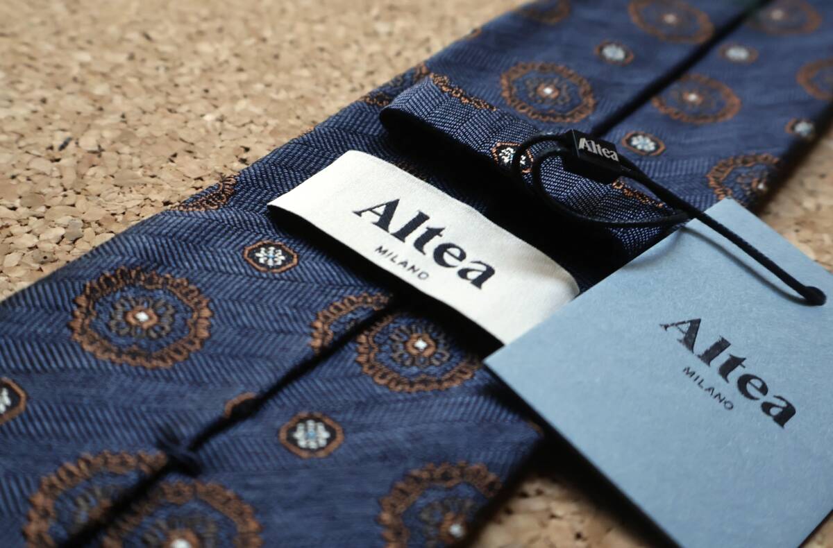 BEAMS、バーニーズニューヨーク、ユナイテッドアローズ、ISETAN MEN'S、gujiなど名だたるショップでおなじみ、イタリアのハンドメイドネクタイ工房Alteaアルテアより。