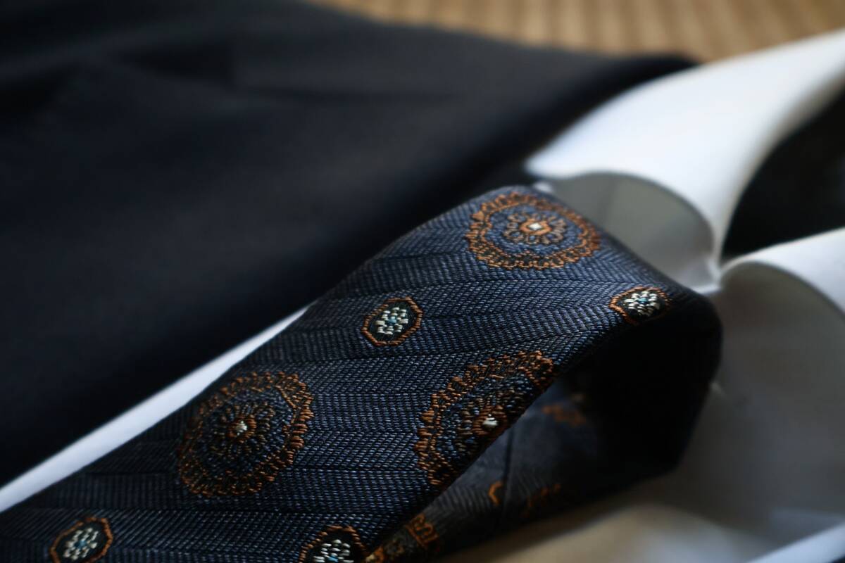 ネクタイの小紋柄でもクラシックなメダリオン柄。