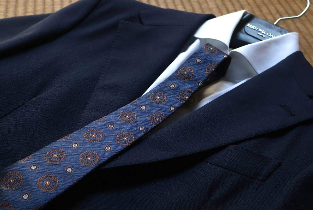 ネイビースーツ、ブラウンスーツでのアズーロエマローネのコーデで活躍してくれるほか、グレーやブラックのスーツにも鉄板かと思います。