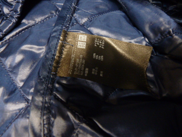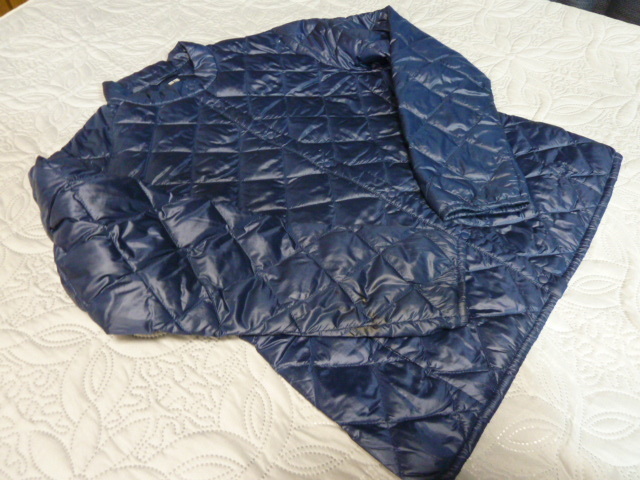 自己紹介を読んで下さいね。 ユニクロ UNIQLO ウルトラライト ダウンの 紺の キルティング フルジップ ジャケットす。4枚目の写真の右袖先と前ラインに汚れがございます。他には目立つシミや色あせやキズ等は無いと思います。サイズはL記載で、実寸、肩幅40cm、そで61cm、身幅51cm、着丈61cm、裾幅47-51cmくらいです。素材は、表裏、ナイロン100、中綿、ダウン90、フェザー10です。お手持ちのお洋服と合わせて下さいね。定形外450円発送がお安いです。ノークレームノーリターンでお願い致します。
