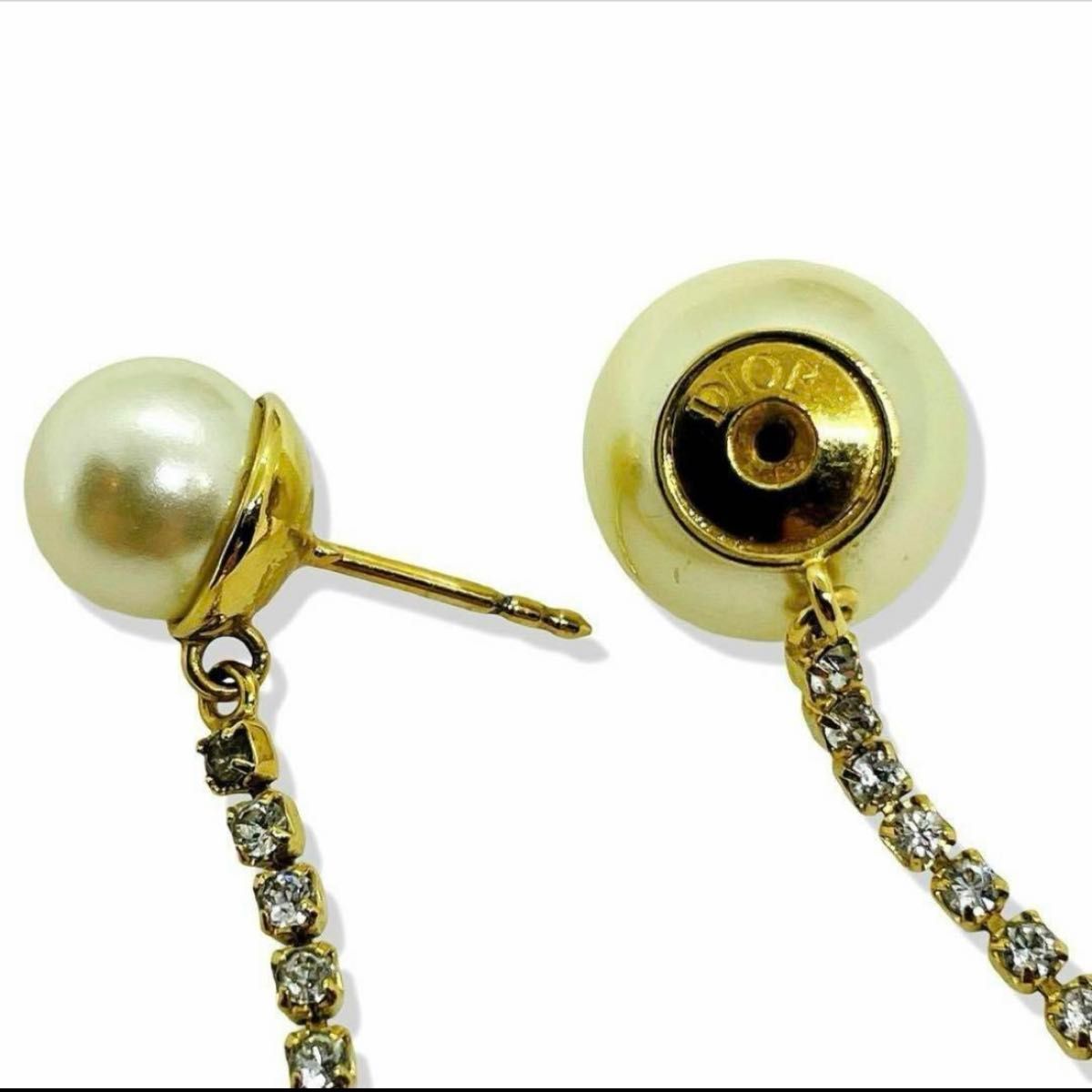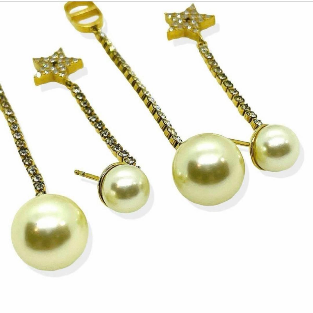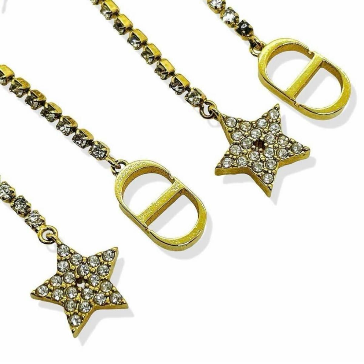 上品なパールとスターが揺れる、Dior(ディオール)のトライバルチェーンピアス。CDロゴとストーンが煌めき、顔まわりを華やかに演出します。