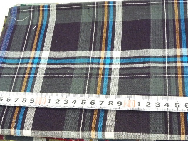 ・ブロード位の先染めのような生地です。イベントの見本生地のため一部にシールの粘着後が有る事があります。