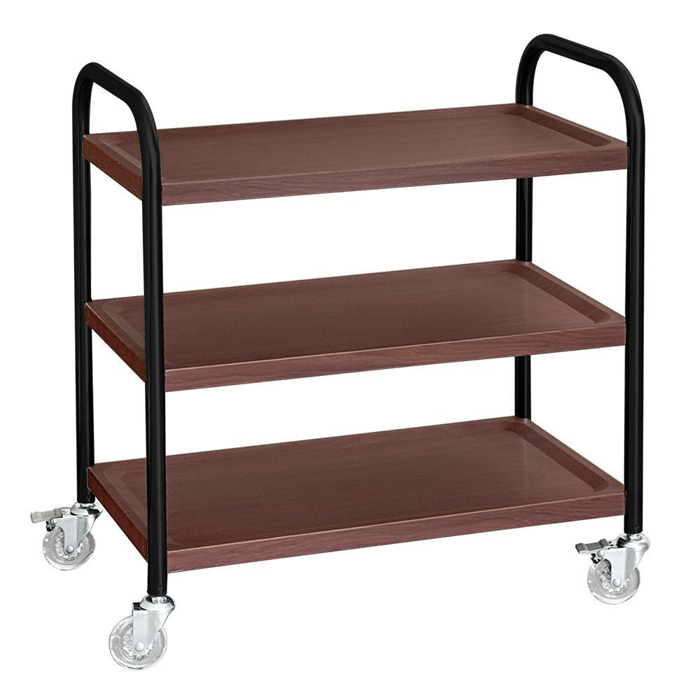 | 業務用 木目調ステンレスサービスワゴン ダークブラウン 3段 黒脚タイプ L |