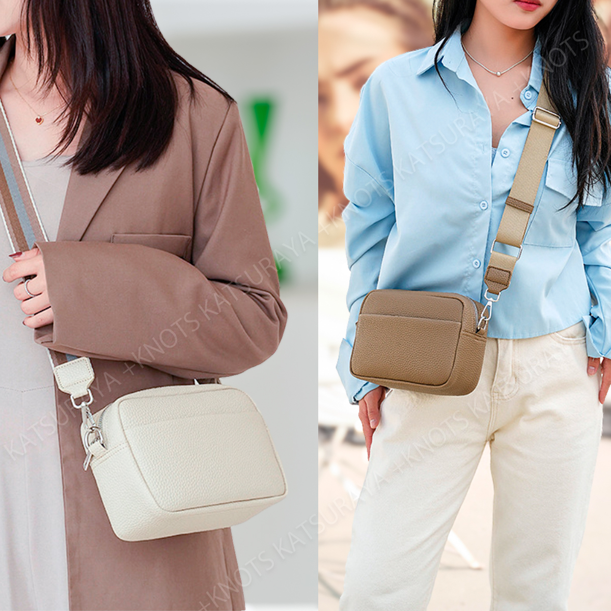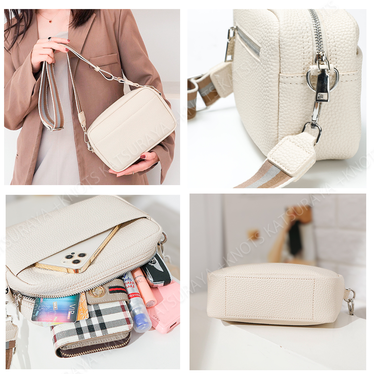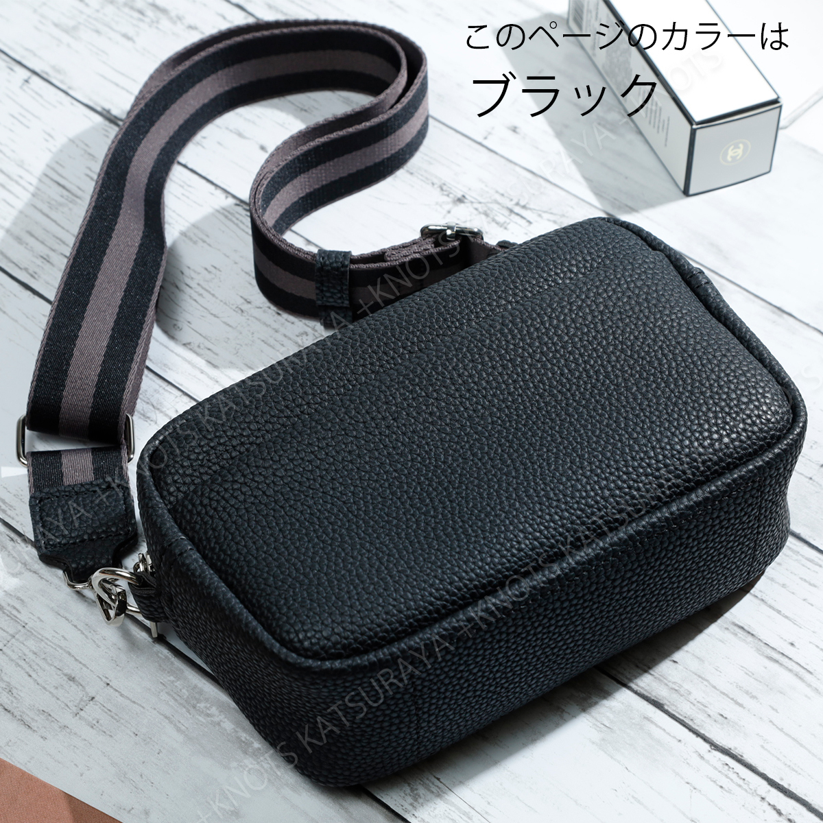 広めのマチと充実のポケットでコンパクトなサイズながらいつも持ち歩く物をきちんと収納できます。太めのベルトでカジュアルな装いにもマッチし、肩への負担も軽減します。主張しすぎないシルバーの金具を採用、厚手ででありながら軽量な素材にシボ柄を採用しています。さらりと肩にかけてコーディネートのアクセントに。