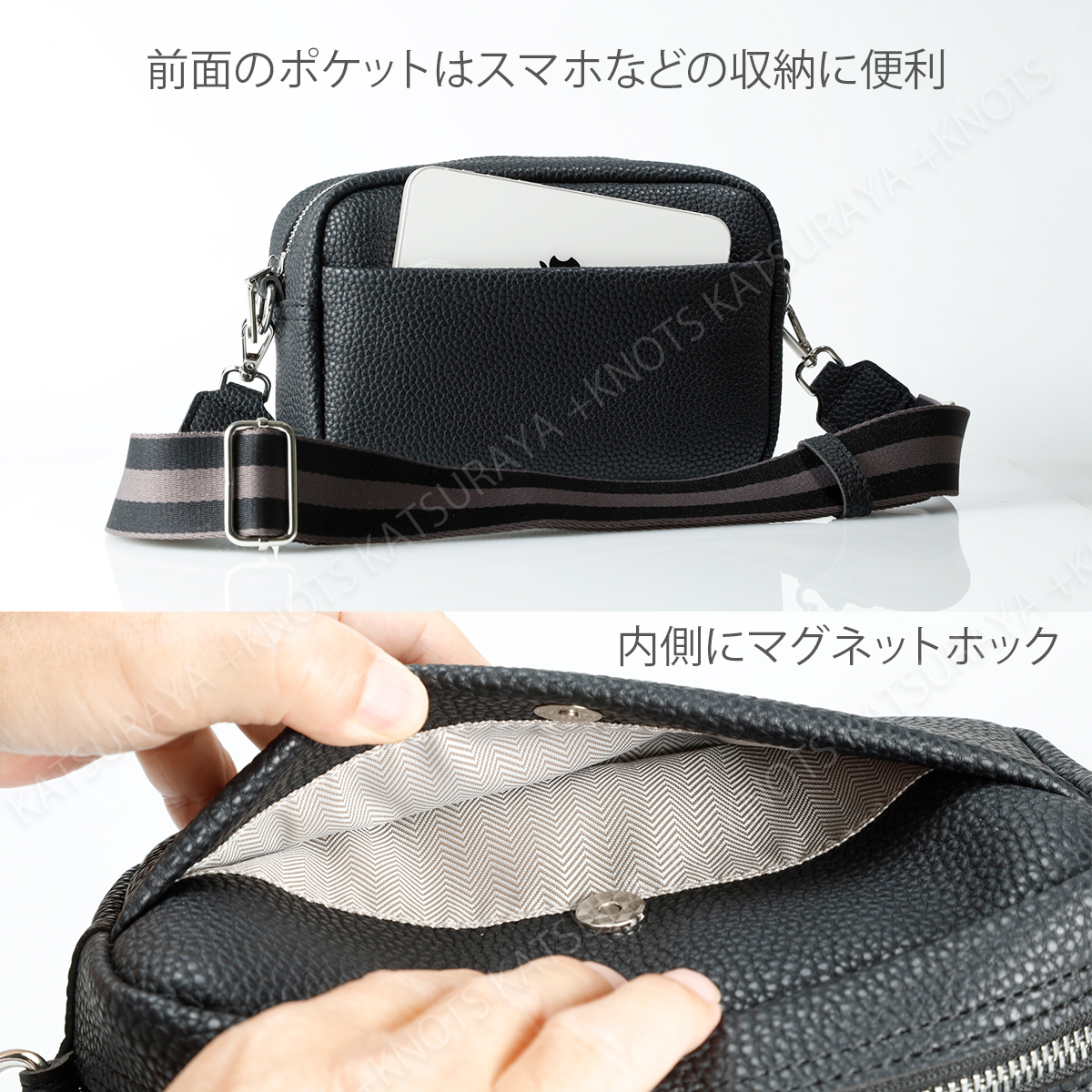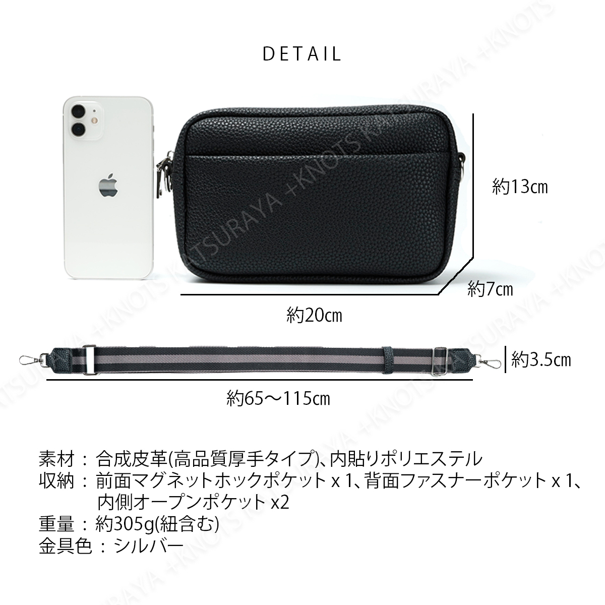 【素材】合成皮革(厚手高品質タイプ)、内張:ポリエステル、金具色シルバー、