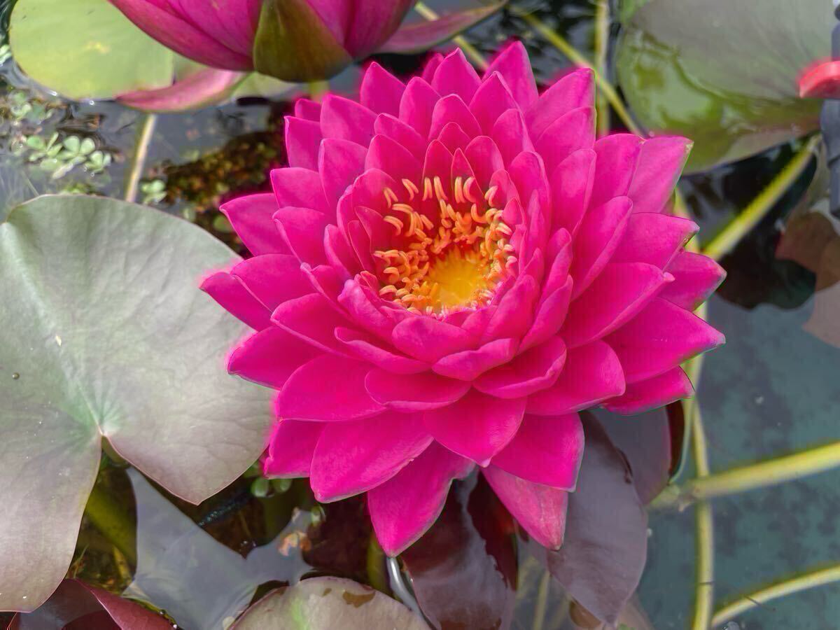 ピンク八重咲大輪なのでとても豪華な睡蓮です。