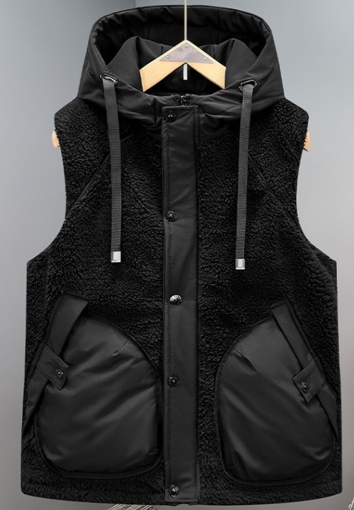 新入荷 ムートンベスト メンズ ワークベスト 厚手アウター パーカ アメカジ ゆったり 黒/L
