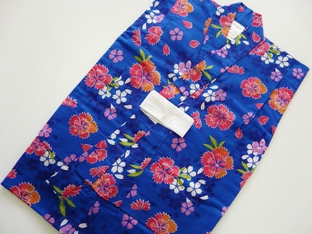 女の子 浴衣 子供浴衣 ゆかた 紺地 花柄 110cm 新品 083